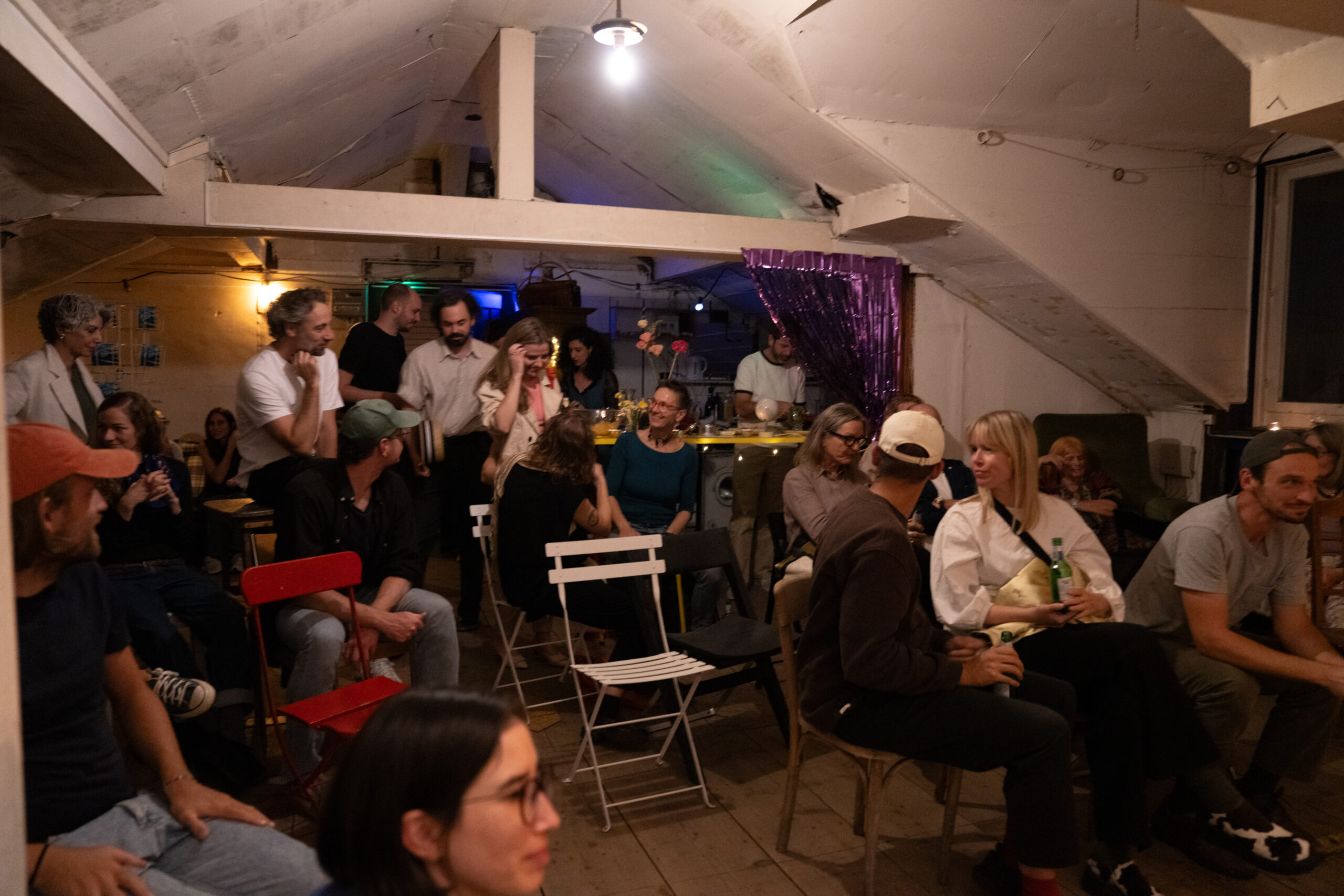 Hotti is a cultural space in Zurich-Hottingen, housed in a former attic whose walls have a lot to say. Layers of history are embedded here — painting classes, secret murals, a beehive tucked in a corner. Rather than erasing these traces, Hotti builds on them, inserting itself into a continuity while opening new chapters.The space sits within a small cultural ecosystem: the school below, the Kunsthaus and the theatre nearby. Hotti aims to be an active part of this fabric — a bridge between generations, disciplines, and audiences, open to the whole neighbourhood.